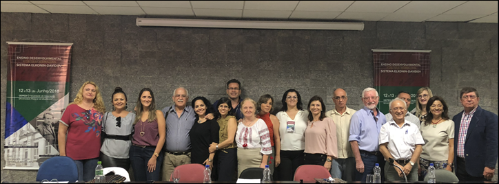 Figura 5: Conferencistas do IV Colóquio Internacional Ensino Desenvolvimental: sistema Elkonin-Davidov, promovido pela Faculdade de Educação da Universidade Federal de Uberlândia. O Prof. Ori é o terceiro da direita para esquerda na primeira linha.