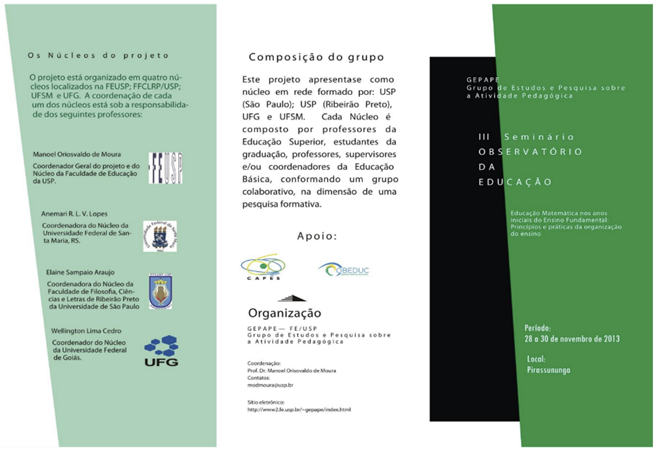 Figura 7: Folder do III Seminário Observatório da Educação promovido em 2013 na cidade de Pirassununga/SP.