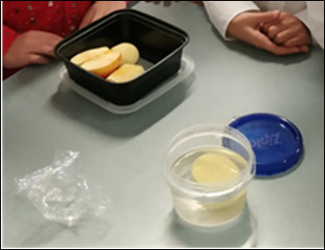 Acontece, por exemplo, quando os alunos começam a estudar sobre açúcar, amido e ácidos. Os alunos trabalham em grupos de 4. O objetivo da experiência é descobrir qual produto contém amido. Cada grupo leva um frasco de tintura de iodo diluída em água, uma pipeta e um recipiente com um pedaço de maçã, batata e pão branco. Ao pingar iodo de uma pipeta em cada alimento e observar as reações, as crianças notaram que as batatas e o pão branco ficavam roxos ou azuis, mas a maçã não. A conclusão foi tirada: batata e pão branco contêm amido.