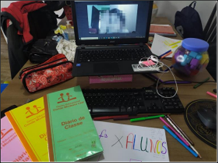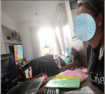 As evidenced in a dialogue with the teacher about the image presented in figure 2, in the research by Cipriani, Moreira and Carius (2021), the lack of adequate equipment and environments for classes, the need to produce videos and materials, and the exposure of personal image and the home environment were highlighted as aspects that negatively interfered with teachers' work during the pandemic.