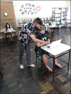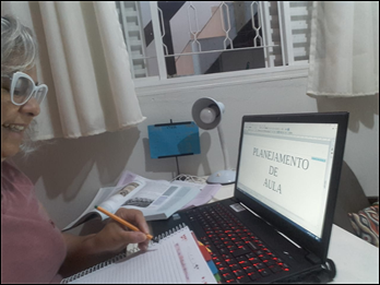 At another point, the teacher's inventiveness is highlighted by the teacher who selects the image shown in figure 3. In dialogue with the researcher-trainer, she highlights that every day she looks for some new activity, analyzes materials and researches new possibilities for playful activities. She is emphatic in saying that this is not the right time to apply tests, because from her perspective, tests do not measure students' knowledge. The teacher already had reservations regarding the way tests were administered as a mere measurement of knowledge, prior to the pandemic. However, her criticism becomes more scathing with the pandemic, as it highlights how inefficient and exhausting this evaluation method can become in extreme times. When seeking a connection with students, the teacher watches the news every day to include the news in her classes. She prepares classes on slides with content mainly made up of images, as she realizes that students can learn more quickly. What is consolidated in these narratives is what Freire (2013) points out as wishing the student well, a relationship of affection that makes up teaching