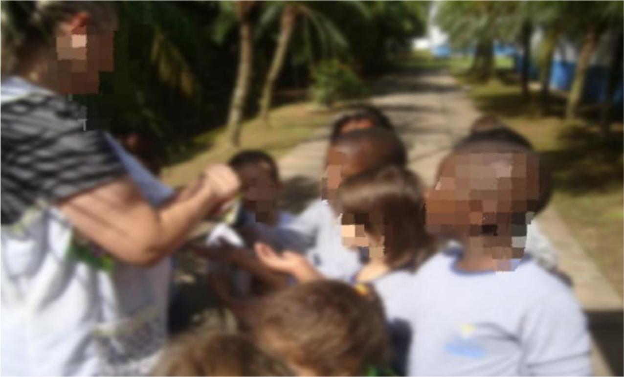 Certo dia, durante a observação de campo, a professora Néia do Jardim II combinou com a turma de plantar sementes de flores no pátio do NEI 2. Observamos que enquanto as crianças realizavam a atividade, interagiam com os colegas de diferentes formas: uns observavam os amigos que cavavam buracos para depositar a semente, outros brincavam de pega-pega, alguns provocavam amigos que não tinham mais sementes para plantar, enquanto outros compartilhavam suas sementes e molhavam a terra. Ou seja, ressignificaram aquela atividade atribuindo novos sentidos para além do que foi planejado pela professora.