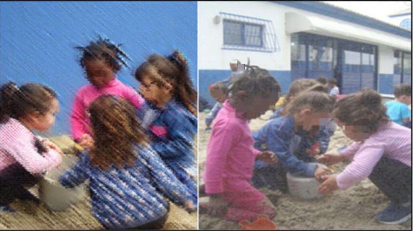 De início pensamos que “Suzanne” estivesse sendo afastada pelo fato de ser estrangeira e/ou negra. Mas, na continuidade da observação da interação, no desenrolar da brincadeira, o desentendimento pareceu ser uma situação normal de conflito entre crianças. “Suzanne”, em nenhum momento se retraiu ou saiu de perto das meninas, ao contrário, ficou insistindo para entrar na brincadeira. Essa persistência também foi percebida por Alexandre (2019), ao se referir às crianças haitianas em sua pesquisa. A autora afirma que uma das características das crianças haitianas é não se resignar e não se intimidar com os colegas diante de negativas de interação.