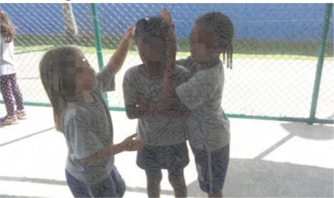 Nos momentos das brincadeiras no parque, nos espaços dos solários, nas salas de referência, nas aulas de Educação Física, era visível crianças haitianas e brasileiras brincando e interagindo positivamente. Era também comum a manifestação de afeto entre elas, ora nos abraços espontâneos, ora no desejo de se sentarem juntas, e também no fato de crianças haitianas serem chamadas de “amigo(a)” pelas crianças brasileiras. Evidentemente, no jogo das culturas de pares, havia momentos de conflitos, recusas para brincar ou para deixar brincar (Corsaro, 2011) distanciamentos e aproximações, mas, em nenhum momento foi percebido pela investigadora qualquer manifestação de cunho racista ou discriminatório entre elas. Assim, os eventuais conflitos foram interpretados como situações no âmbito da gramática das culturas infantis (Sarmento, 2003).